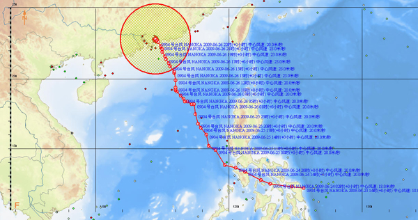 系统提供国内外多个权威台风发布机构发布而台风预报信息,内容包括来源、时次、时效、中心经度、中心纬度、中心最低气压、最大风速、风圈半径、移向、移速等,并将台风信息和船舶位置信息进行对比,对可能造成威胁的船舶进行预警。