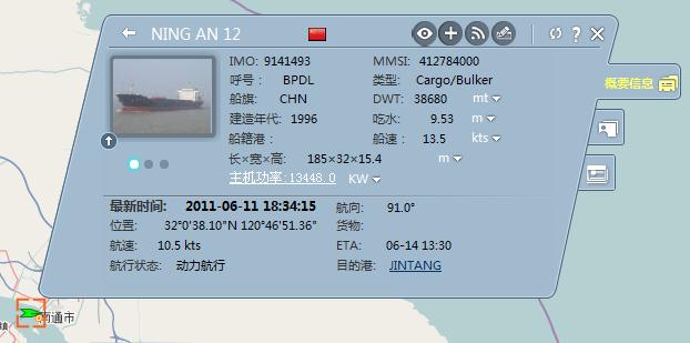系统联网覆盖全球主要港口的AIS基站及全国海事AIS岸基站,可以通过船名、IMO、MMSI或呼号在地图上准确定位船舶的实时位置,了解船舶的航速、航向、航行状态、目的港和ETA。