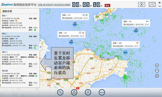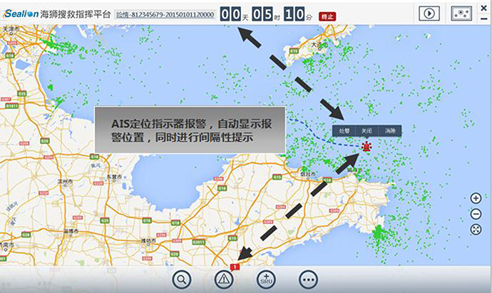 海狮搜救指挥平台是由青岛海狮网络科技有限公司承担的国家科技支撑计划项目“生命探测与搜索关键技术研究与装备研发”,研究“基于自动识别(AIS)技术的个人海上搜救系统的研制”的重要成果。是建立海、陆、空立体应急救援体系的重要组成部分。该系统可与国家海事监管系统集成,有效的监控辖区内已安装AIS设备和配置使用水上搜救示位标(AIS-MOB)的各类海上交通运输工具及作业人员的安全状况,起到及时预警、快速接警、有效指挥的作用。一旦发生险情,系统会自动报警,应急中心可快速响应,实施有效的救助,最大限度的保证人民生命财产的安全。